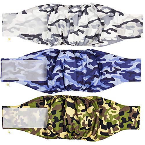 Pannolini da Pancia per Cani Maschi, Confezione da 3, Impermeabile (CAMO, L)