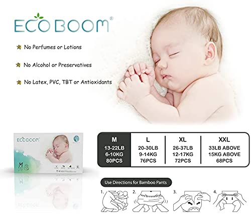 ECO BOOM Pannolini Salvaslip Sostenibili Ecologici Per La Massima Protezione Dalle Perdite, Taglia 3 (13-22 Libbre) 80 Pannolini Di Bambù Altamente Assorbenti Medio
