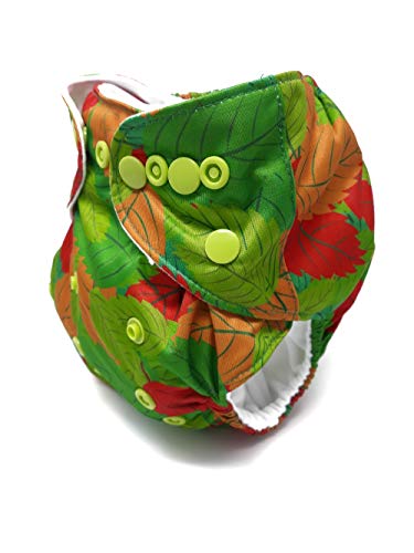 Pannolino di stoffa Three Little Imps con disegni (dotati di 2 inserti) - Foglie verdi