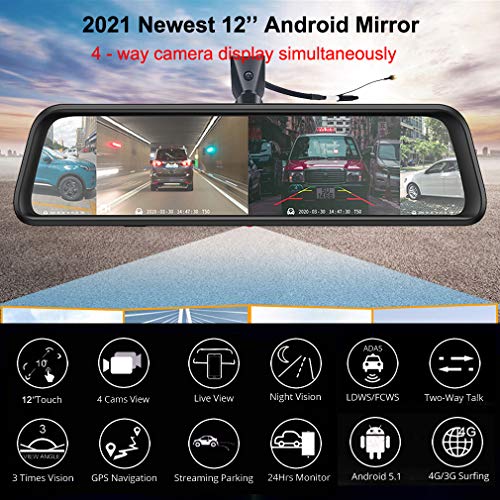 SZKJ 360 ° Panoramico 12 "Schermo Intero 4G Touch IPS Speciale Auto Dash Cam Android 5.1 Specchio Retrovisore con GPS Bluetooth WiFi FHD 1080 P 4CH Telecamere Lens