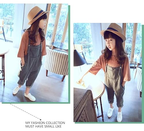 PanpanBox Salopette da bambina con tasca, in denim, per il tempo libero, pantaloni chino, per bambini dai 3 agli 11 anni, grigio scuro, 150 cm