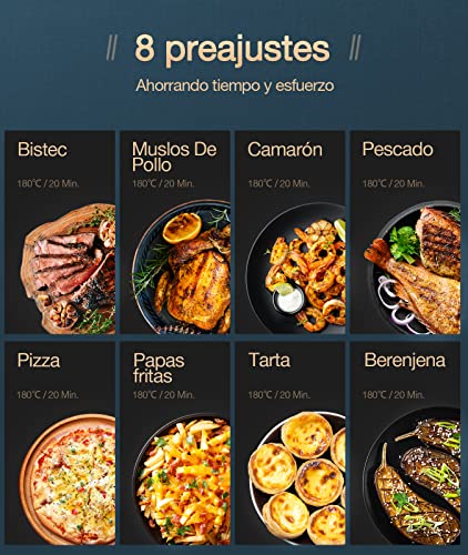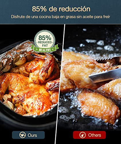 Riduce l'olio dell'85% e riscaldamento a circolazione a 360°: il principio di funzionamento della friggitrice ad aria calda è che la friggitrice ad aria calda cucina gli alimenti a 360°. Utilizza il principio di reazione di Maillard, che assicura che le patate fritte diventino croccanti e il pollo succoso, mentre il volume di olio viene ridotto dell'85%. Non c'è bisogno di preoccuparsi della perdita di sapore, il cibo finito sa così delizioso come con le friggitrice.