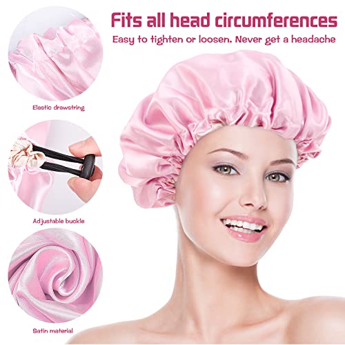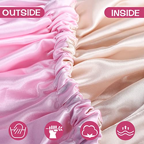 PANSYFEN 2 pcs Cuffia da Cofano in Raso Regolabile Cuffia Seta Capelli Ricci Riutilizzabile Cuffia Capelli Ricci Notte Bonnet Grande Donne Capelli Protezione per Donna Doccia Spa Salon Bagno Uso