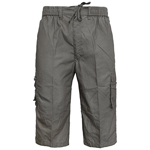 Pantaloncini cargo da spiaggia per uomo, in cotone, gamba a 3/4 e vita elasticizzata, taglia S - 6XL Grey X-Large