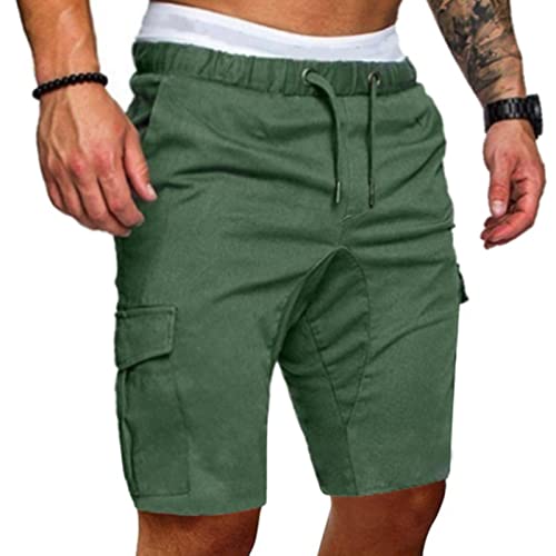 XKUN Pantaloncini Casual da Uomo Beach Corto Corto Corto Corti Corti Merci in Vita Elastica Multi-Tasca Pantaloni Pantaloni Corti Pantaloni Corti-Army Green,S