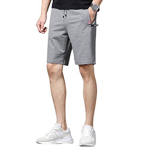 LY4U Pantaloncini Casual da Uomo in Cotone Estivo con Tasche Elastiche in Vita Grigio Scuro XL