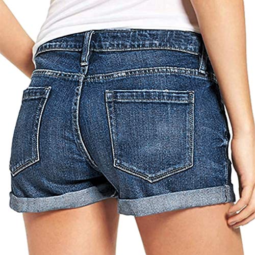 YJLX Pantaloncini corti da donna, estivi, jeans a costine, con buchi, elasticizzati, in denim, a vita alta, elasticizzati, in denim, Blu, XL