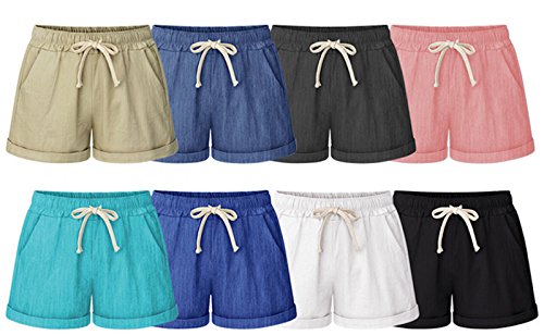 [Due stili] pantaloncini al ginocchio, pantaloncini alla coscia. pantaloni donna a vita alta ed elastica con tasche laterali, larghi e casual, possono abbinare qualsiasi top estivo nel tuo guardaroba.