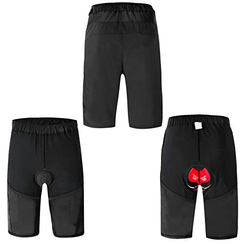 Pantaloncini MTB Uomo Downhill, Pantaloncini Ciclismo con Cuscinetto Imbottito 3D Gel Biancheria, Bici Pantaloni Corti Traspirante Asciugatura Rapida,Nero,M