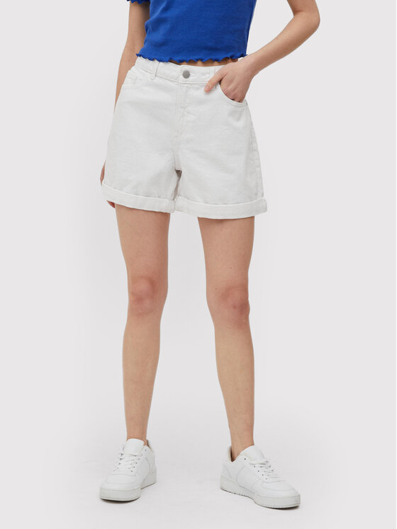 Vila Pantaloncini di jeans Pina 14074944 Bianco Relaxed Fit