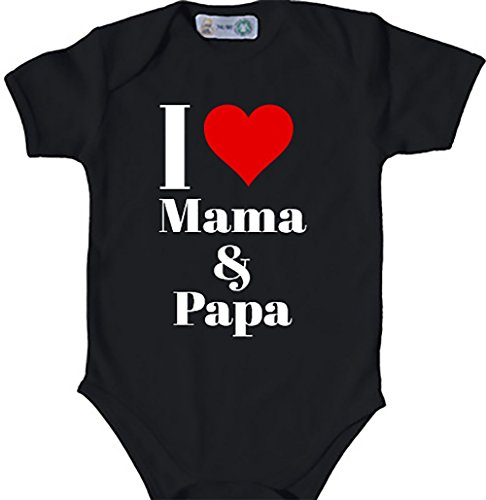 Baby Body Bio Body Suit pantaloncini maniche lunghe i love (cuore) mamma & papà Nero nero 74-80