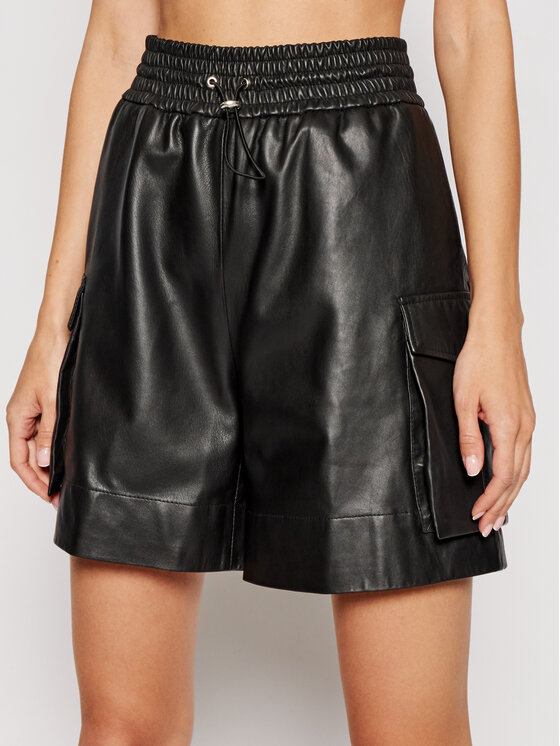 Herskind Pantaloncini di pelle Berta 4005715 Nero Relaxed Fit