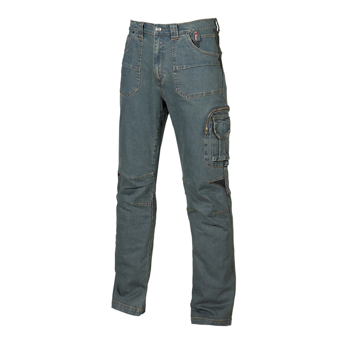 regolazione vita con velcri. Triple cuciture.. Ampie tasche anteriori con soffietti tecnici stretch. tasca portamonete, tasca laterale portautensili, multi tasca funzionale laterale, 2 tasche posteriori con sistema Free Pocket di cui una con chiusura di sicurezza con zip. porta martello.