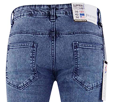 True Face - Pantaloni aderenti da uomo in denim, pantaloni elasticizzati, cerniera lampo, cotone elasticizzato, abbigliamento casual, 5 tasche, tutte le misure di vita e gambe in blu, grigio, bianco, nero Tf021 - Lavaggio medio leggero W38 / L32