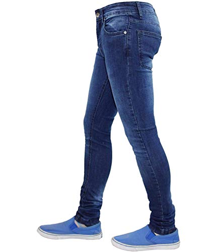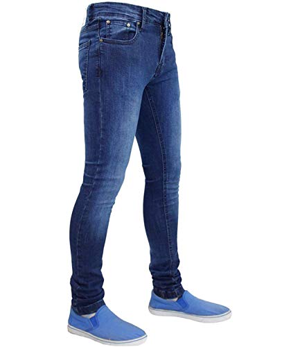 True Face - Pantaloni aderenti da uomo in denim, pantaloni elasticizzati, cerniera lampo, cotone elasticizzato, abbigliamento casual, 5 tasche, tutte le misure di vita e gambe in blu, grigio, bianco, nero Tf021 - Dark Mid Wash W38 / L32