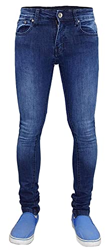 True Face - Pantaloni aderenti da uomo in denim, pantaloni elasticizzati, cerniera lampo, cotone elasticizzato, abbigliamento casual, 5 tasche, tutte le misure di vita e gambe in blu, grigio, bianco, nero Tf021 - Dark Mid Wash W32 / L32