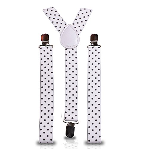 Clip Su Pantaloni Bretelle per Uomo e Donna - Unisex Bretelle con Regolabile E Elastico Cinghie - Moda Accessorio per Feste, Matrimoni, Casual, Formale Eventi - Bianco con Neri Pois, 30"(76cm), 76cm