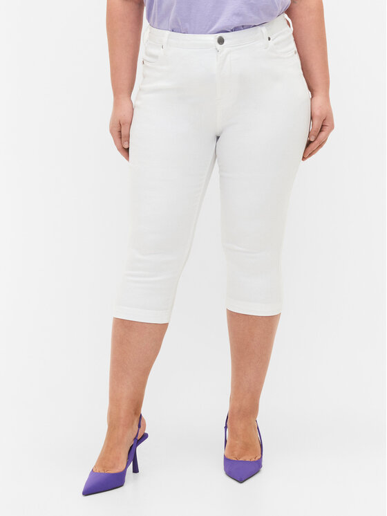 Zizzi Pantaloni capri O10305H Bianco Slim Fit
