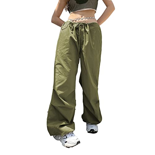 Pantaloni cargo da donna Baggy a vita alta, sportivi, con gamba larga, con elastico oversize, hippie, pantaloni da jogging Y2K, vintage, Aesthetic E-Girl Ragazze Harajuku Streetwear, A,verde oliva, S