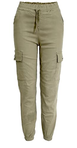 Van Der Rich ® - Pantaloni Cargo con Vita Alta Elasticizzata - Donna (Beige, S-M)