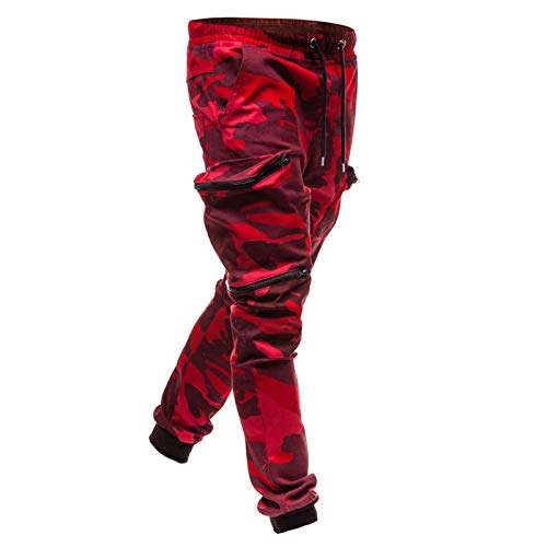 Pantaloni cargo da uomo, leggeri, impermeabili, tattici, lunghi, elasticizzati, casual, larghi, da allenamento, Colore: rosso, XXL