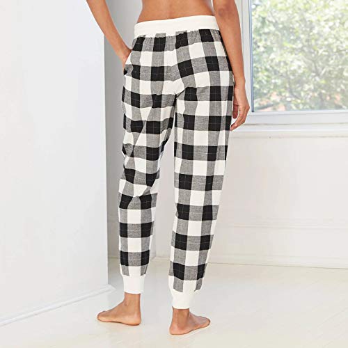 Pantaloni da casa Casual a Scacchi a Contrasto da Donna Pantaloni da Jogging Sportivi con Coulisse in Vita Elastica