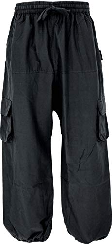 GURU SHOP, Pantaloni Goa, Pantaloni da Yoga da Uomo, Comodi Pantaloni Casual, Nero, Cotone, Dimensione Indumenti:L/XL (54), Pantaloni