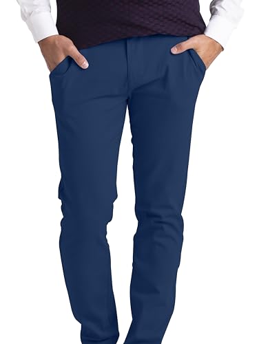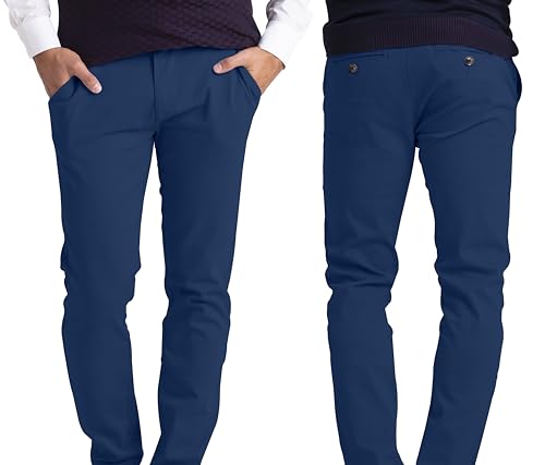 R & T - Pantaloni da uomo Slim Fit in cotone chino, tessuto lavabile in lavatrice