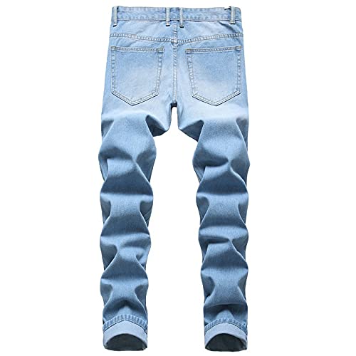 NP Pantaloni da Uomo in Denim con Gamba Dritta, Aderenti, Non Elastici, Colore Chiaro, Azzurro Chiaro, 56