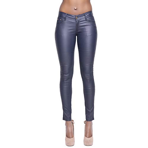 Miss OK - Pantaloni da donna in finta pelle, effetto bagnato, pantaloni da jeggings