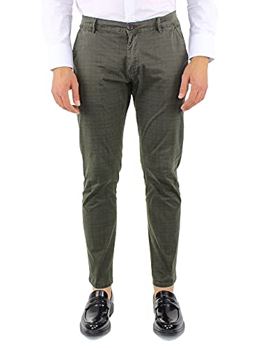Pantaloni Uomo Eleganti in Cotone Leggero a Quadri Classici (Verde, 50)
