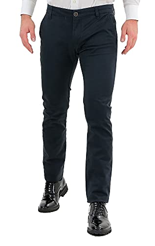 Pantaloni Uomo Eleganti Invernali Slim Fit Chino (Blu, 44)
