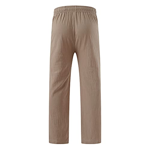 Pantaloni estivi Loose Fit in lino, da uomo, lunghi, leggeri, in cotone, per il tempo libero, da spiaggia, lunghi, taglie forti, con coulisse, con tasca, comodi e in tinta unita, cachi, XXL