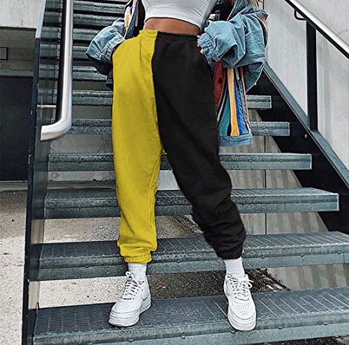 Pantaloni Femminili Moda Pantaloni Larghi Elastici a Vita Alta Pantaloni con Cinturino alla Caviglia per Donna Pantaloni Lunghi da Yoga con Tasca (C-Giallo-Poliestere, XL)