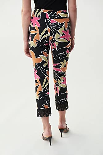Bellissimi pantaloni Joseph Ribkoff con stampa floreale su fondo nero.Modello semplice con elastico in vita e rifiniture in pizzo sulla gamba.