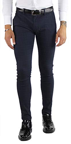 Pantaloni Uomo Invernali Eleganti in Cotone Caldo a Quadri Blu (52)