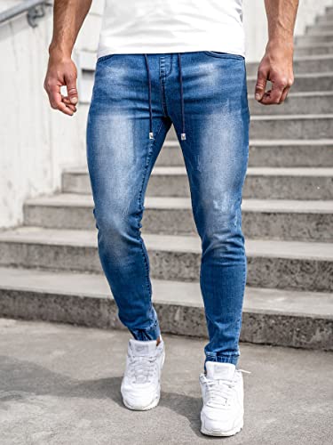 BOLF Uomo Pantaloni di Jeans Used Look Destroyed Denim Style Regular Fit Gamba Stretta Tempo Libero Casual Style MP00532BS Blu Scuro XXL [6F6]