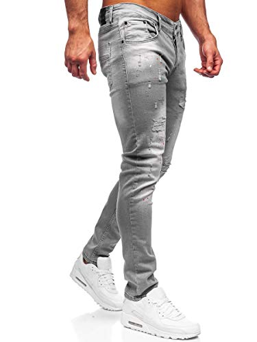 BOLF Uomo Pantaloni di Jeans Used Look Destroyed Denim Style Regular Fit Gamba Stretta Tempo Libero Casual Style R917 Grigio M [6F6]