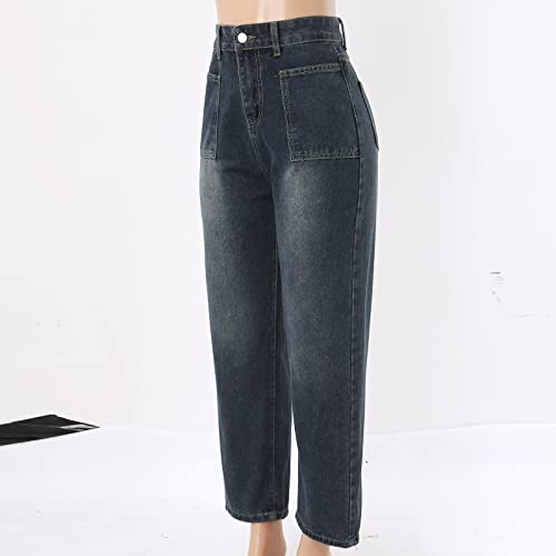Pantaloni Jeans Donna Vita Alta Gamba Dritta Jeans Vita Alta con Tasche Comode Denim Eleganti Strappati Jeans Donna Classico Autunnale Jeans Donna Vita Alta Denim Pantaloni Donna