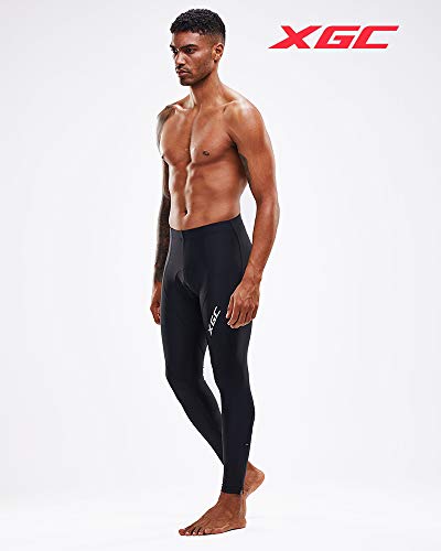 XGC Pantaloni lunghi da uomo, da ciclismo, da ciclismo, pantaloncini da uomo, elastici, traspiranti, con imbottitura in spugna 4D ad alta densità, Uomo, Nero, XL