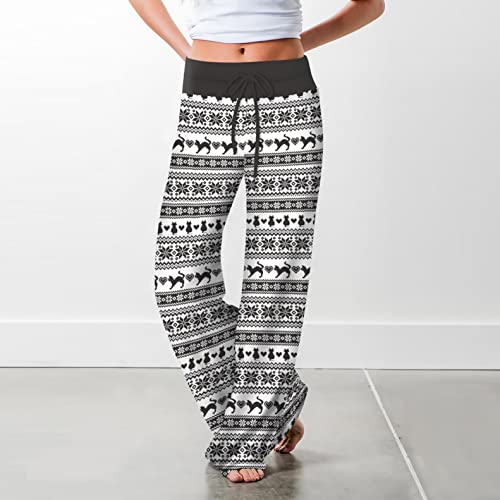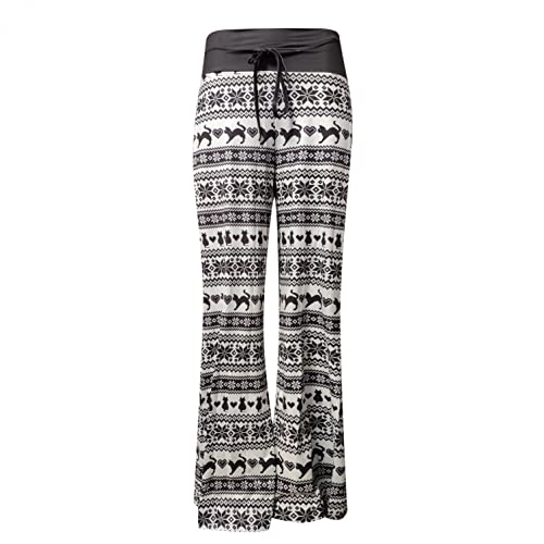 SGSD Pantaloni lunghi da donna per il tempo libero, lunghi, a gamba larga, da donna, colorati, con motivo natalizio, da yoga, da jogging, Aa-grigio, S