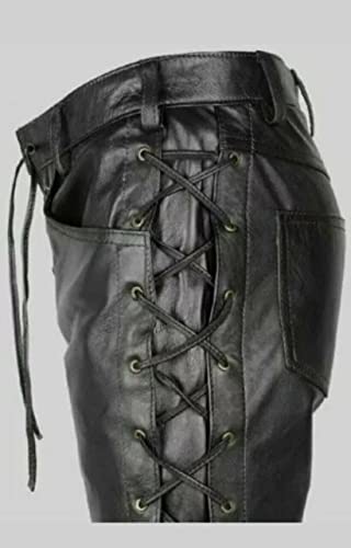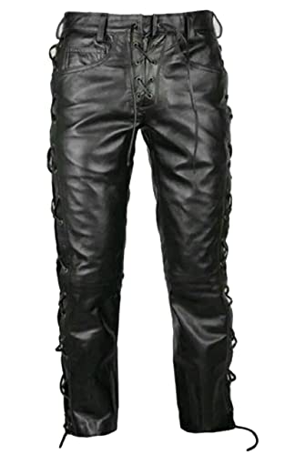 Pantaloni da motociclisti in vera pelle da uomo con lacci laterali e pantaloni da motociclisti