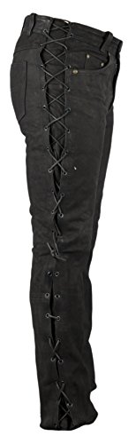 Pantaloni in pelle, Modello "Jean Biker" allacciato (36), Colore: Nero