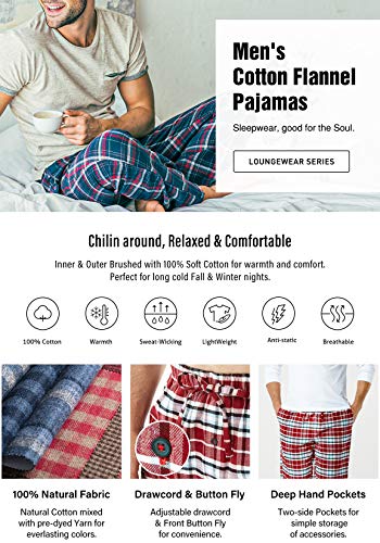CQR Pantaloni del Pigiama da Uomo Pantaloni Casual con Coulisse in Cotone 100% Pantaloni da Notte Morbidi Scozzesi in Flanella con Tasche, HPJ100 1Confezione - Blu Navy e Blu, S
