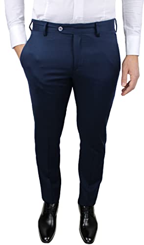 Pantaloni Uomo Sartoriali Nero Blu Grigio Classico Elegante Cerimonia (52, Blu Scuro)