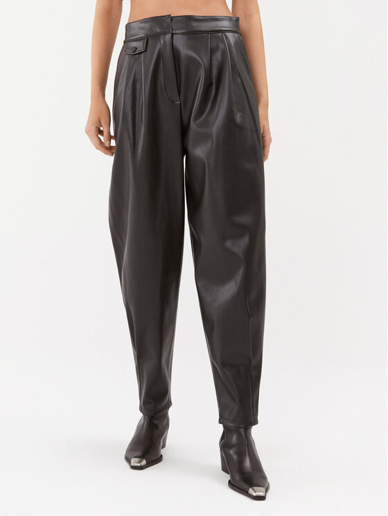 Hugo Pantaloni in similpelle Hesizila-1 50498412 Nero Baggy Fit