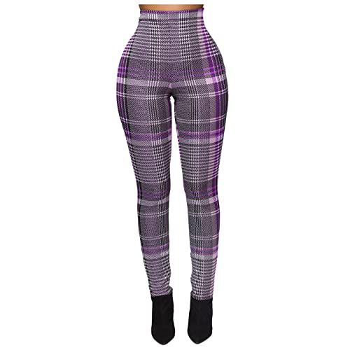 Pantaloni Skinny Jeans Donna Denim Jogger Elastica Vita Alta Zampa, Attillati A Vita Alta con Stampa Scozzese A Quadri alla Moda(Viola,XXL)
