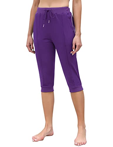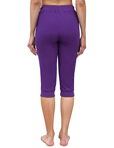 NC Pantaloni Sportivi Donna Pantaloni Capri in Cotone Pantaloni 3/4 Estivi Pantaloni Tuta Casual con Tasche per Yoga Fitness Jogger Viola M