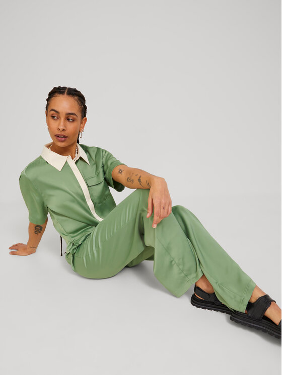 Pantaloni di tessuto 12200161 Verde Loose Fit