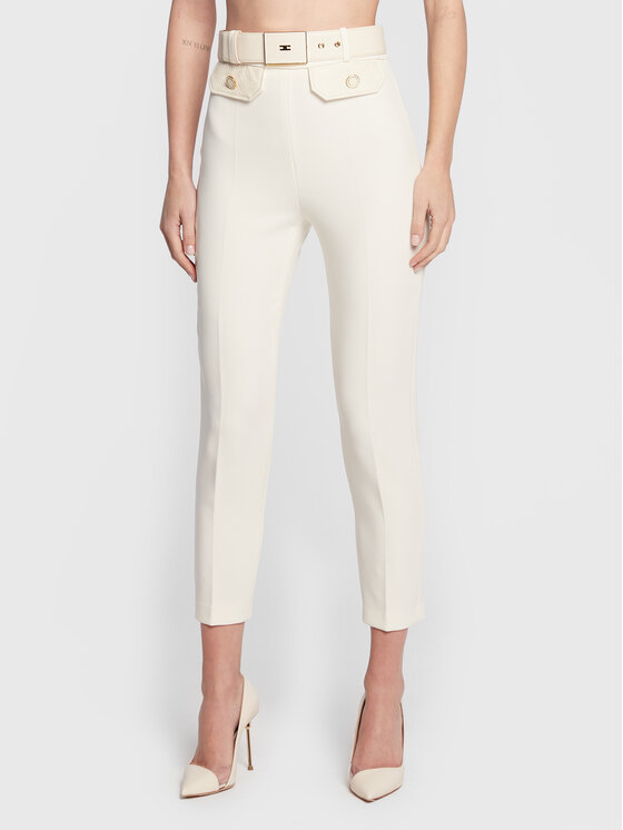 Elisabetta Franchi Pantaloni di tessuto PA-041-27E2-V340 Écru Regular Fit